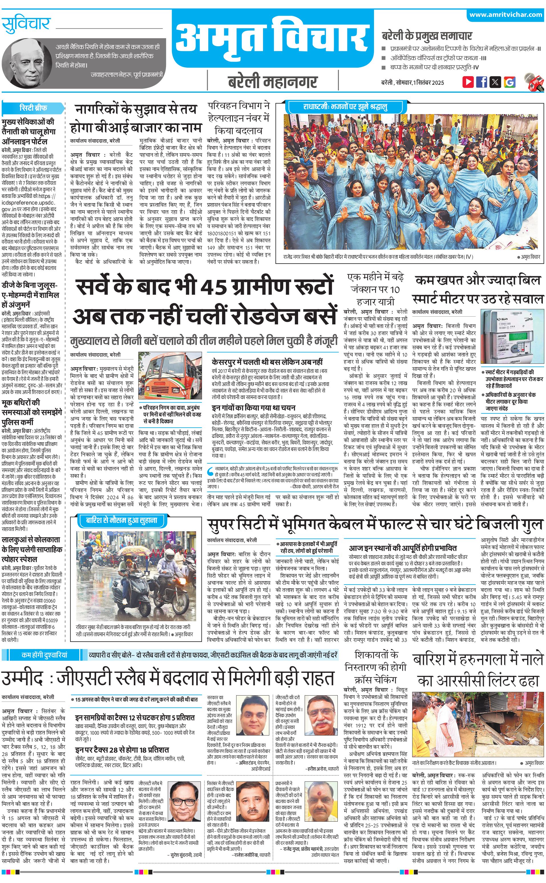 बरेली महानगर - 01 Sep 2025 - - Page 1