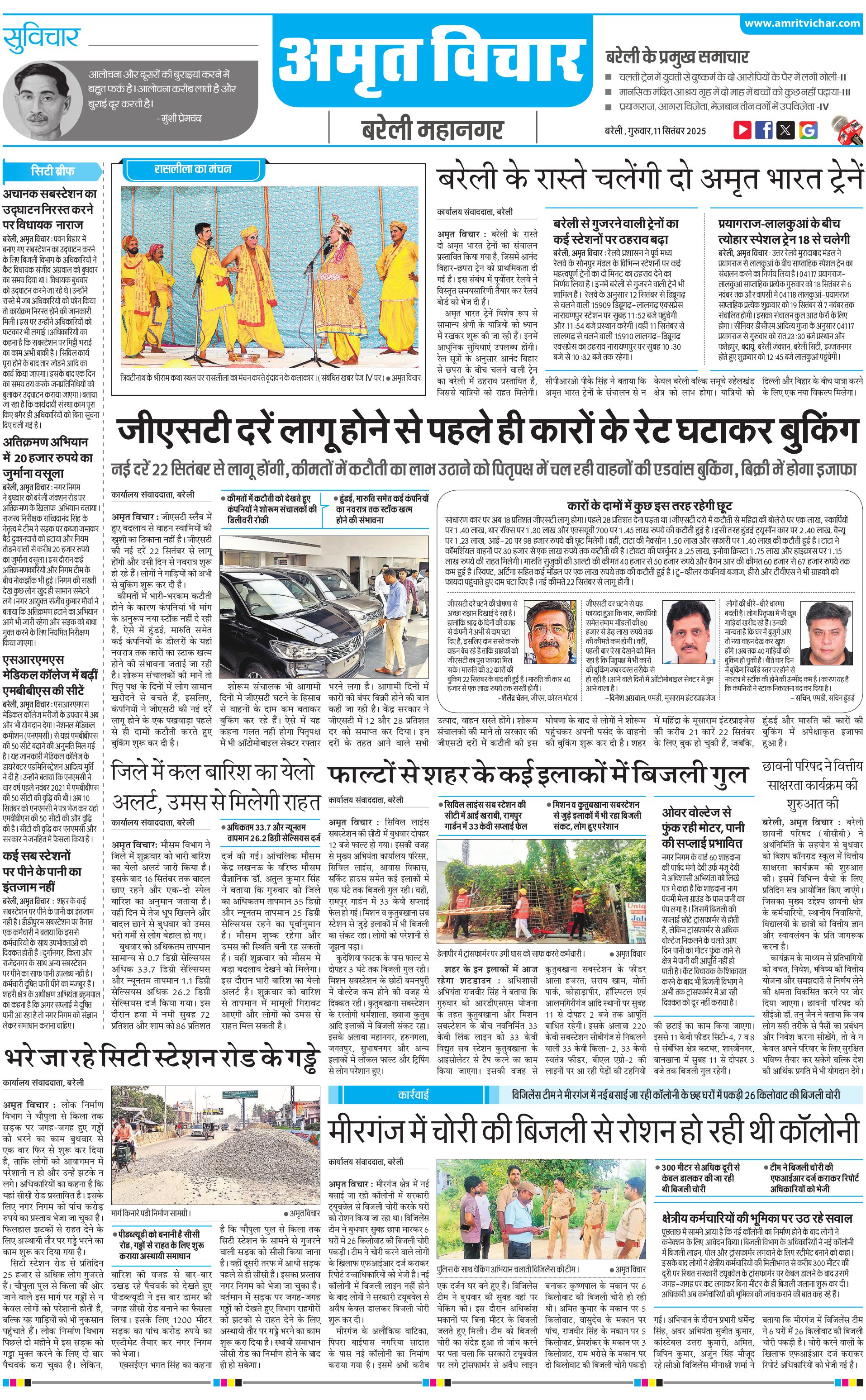 बरेली महानगर - 11 Sep 2025 - - Page 1