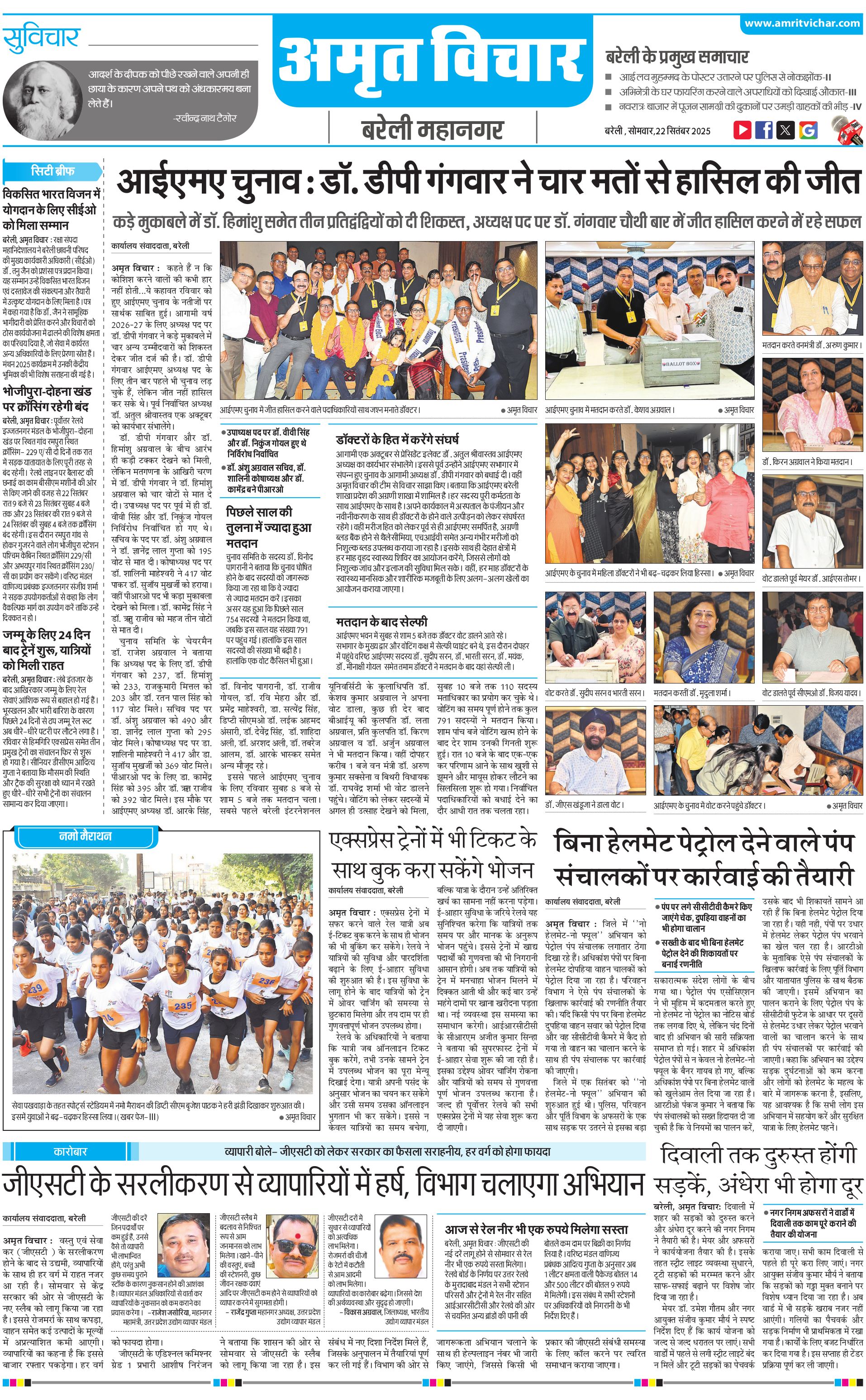 बरेली महानगर - 22 Sep 2025 - - Page 1