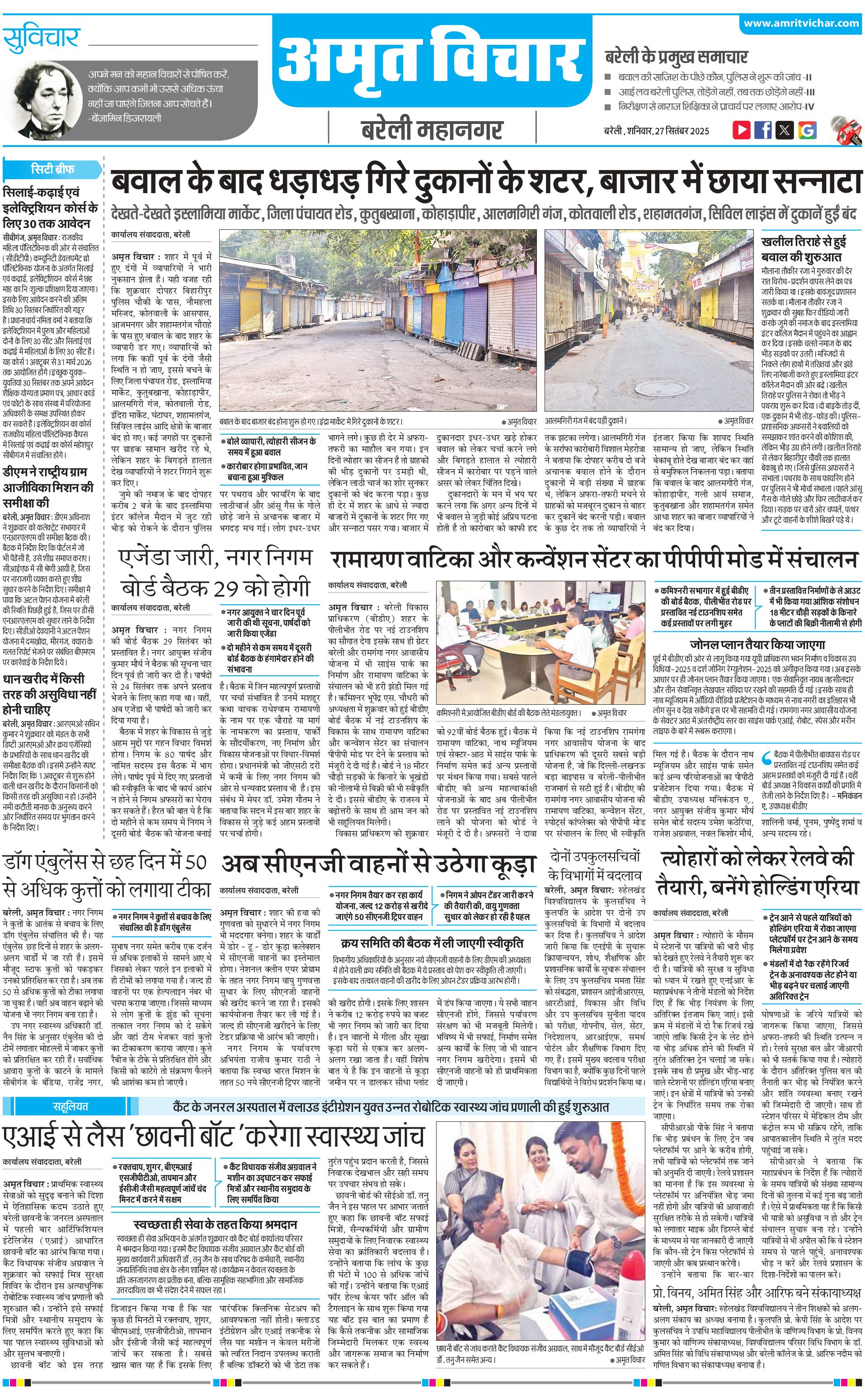 बरेली महानगर - 27 Sep 2025 - - Page 1