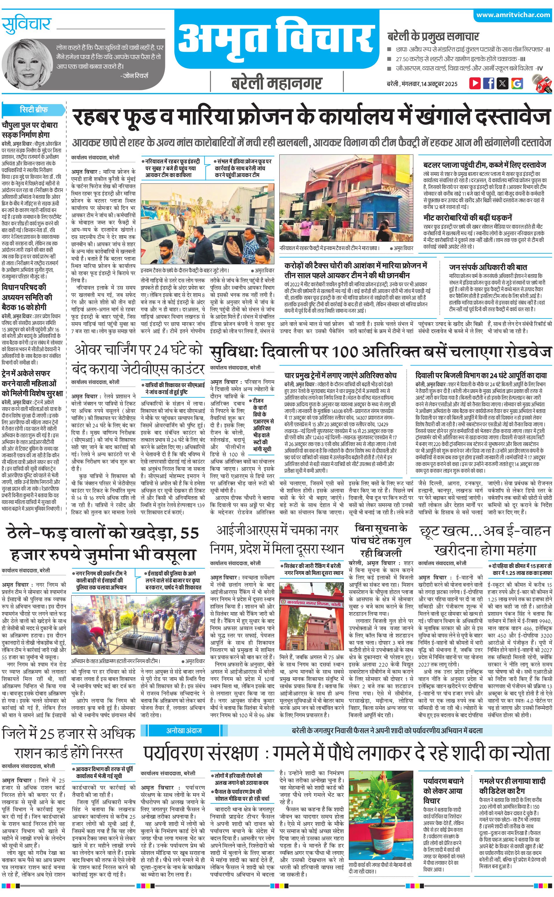 बरेली महानगर - 14 Oct 2025 - - Page 1