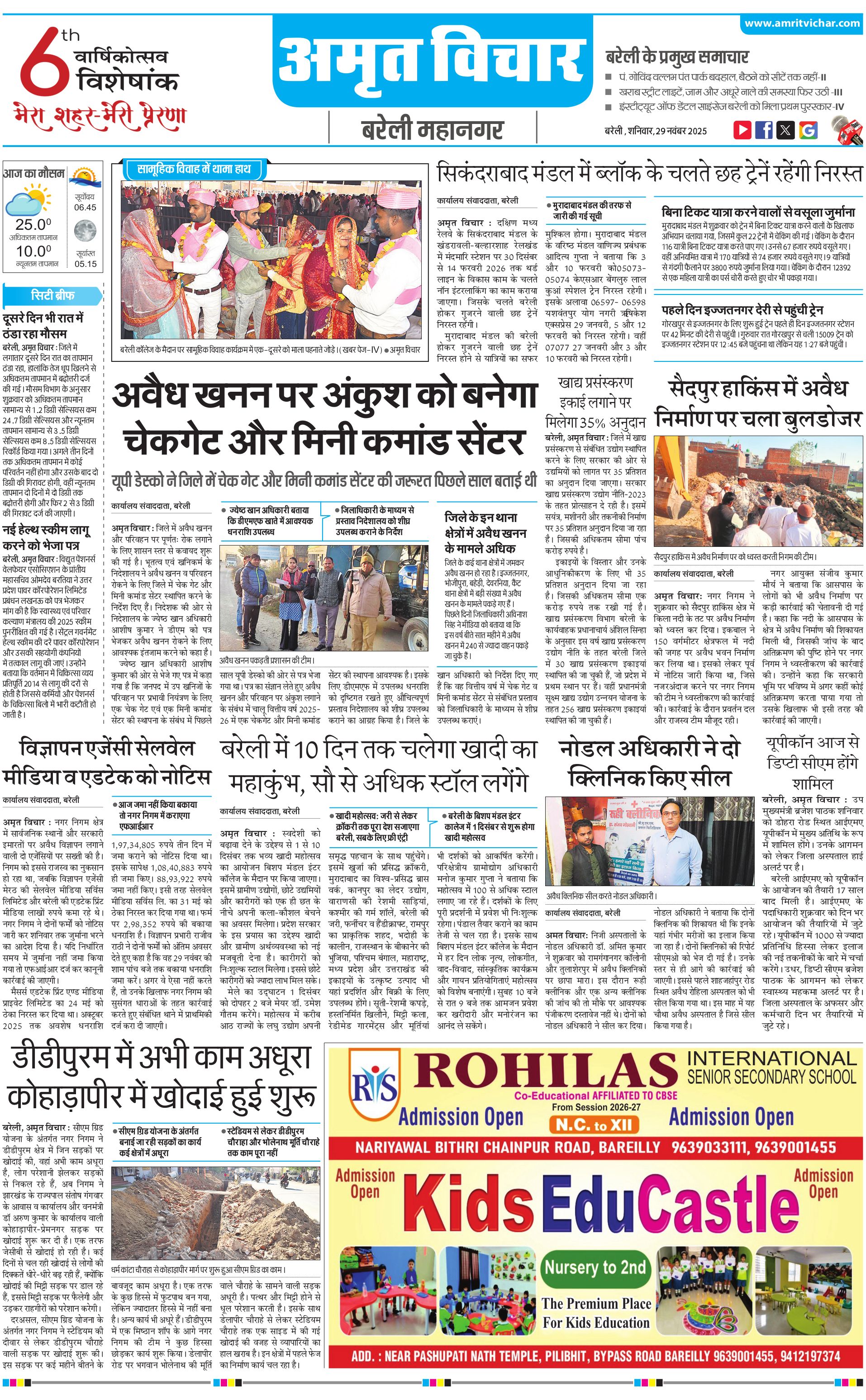 बरेली महानगर - 29 Nov 2025 - - Page 1