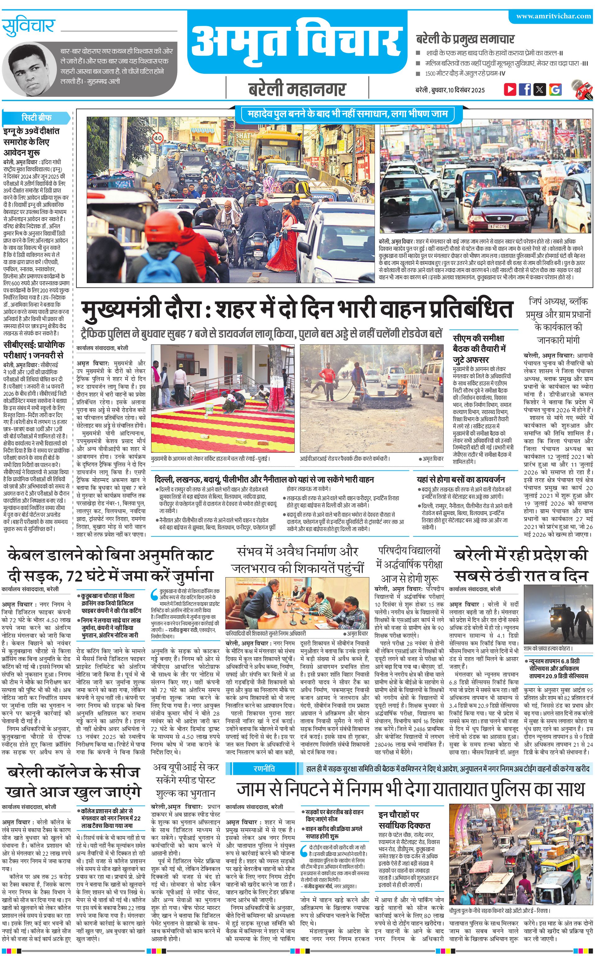 बरेली महानगर - 10 Dec 2025 - - Page 1