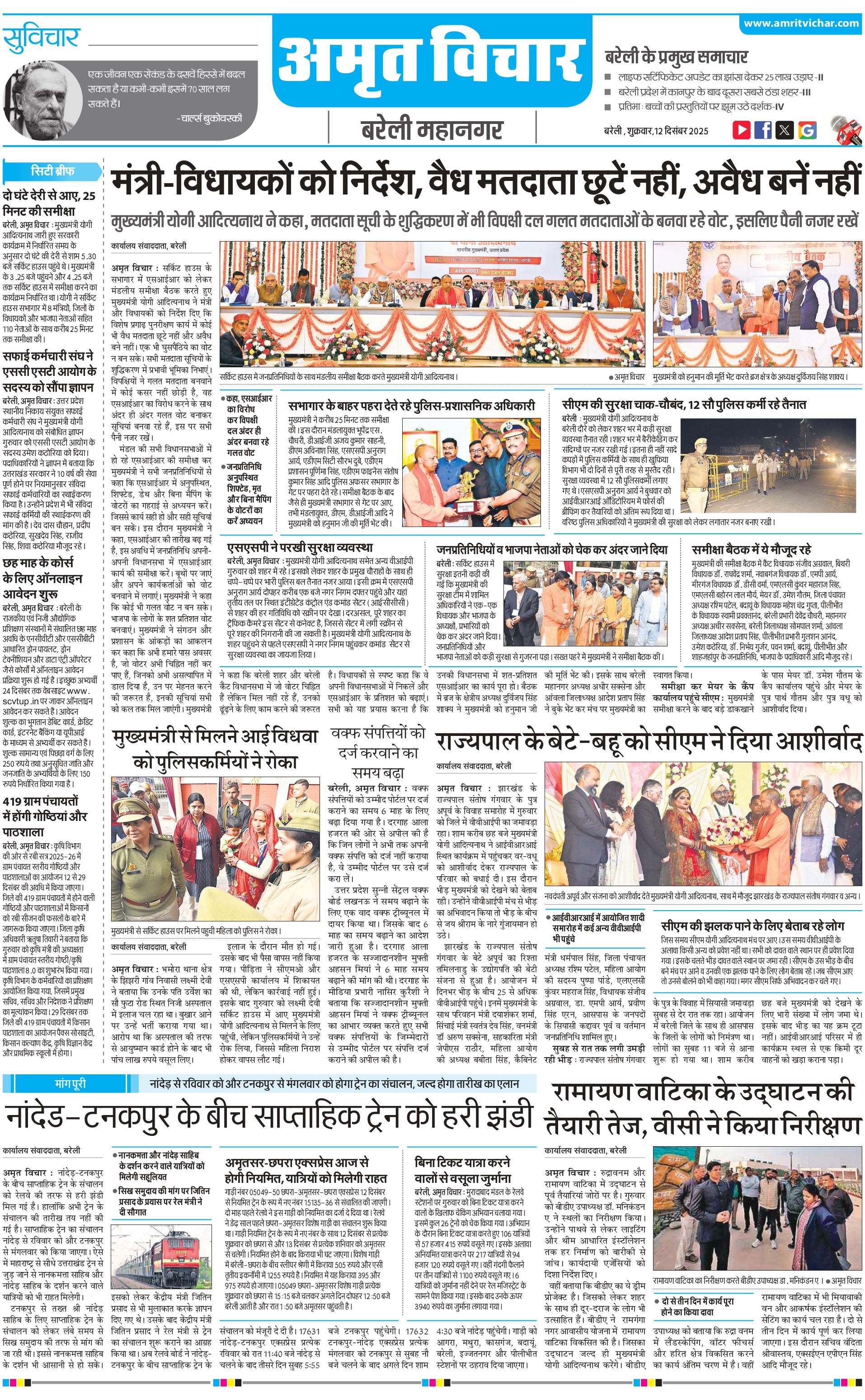 बरेली महानगर - 12 Dec 2025 - - Page 1