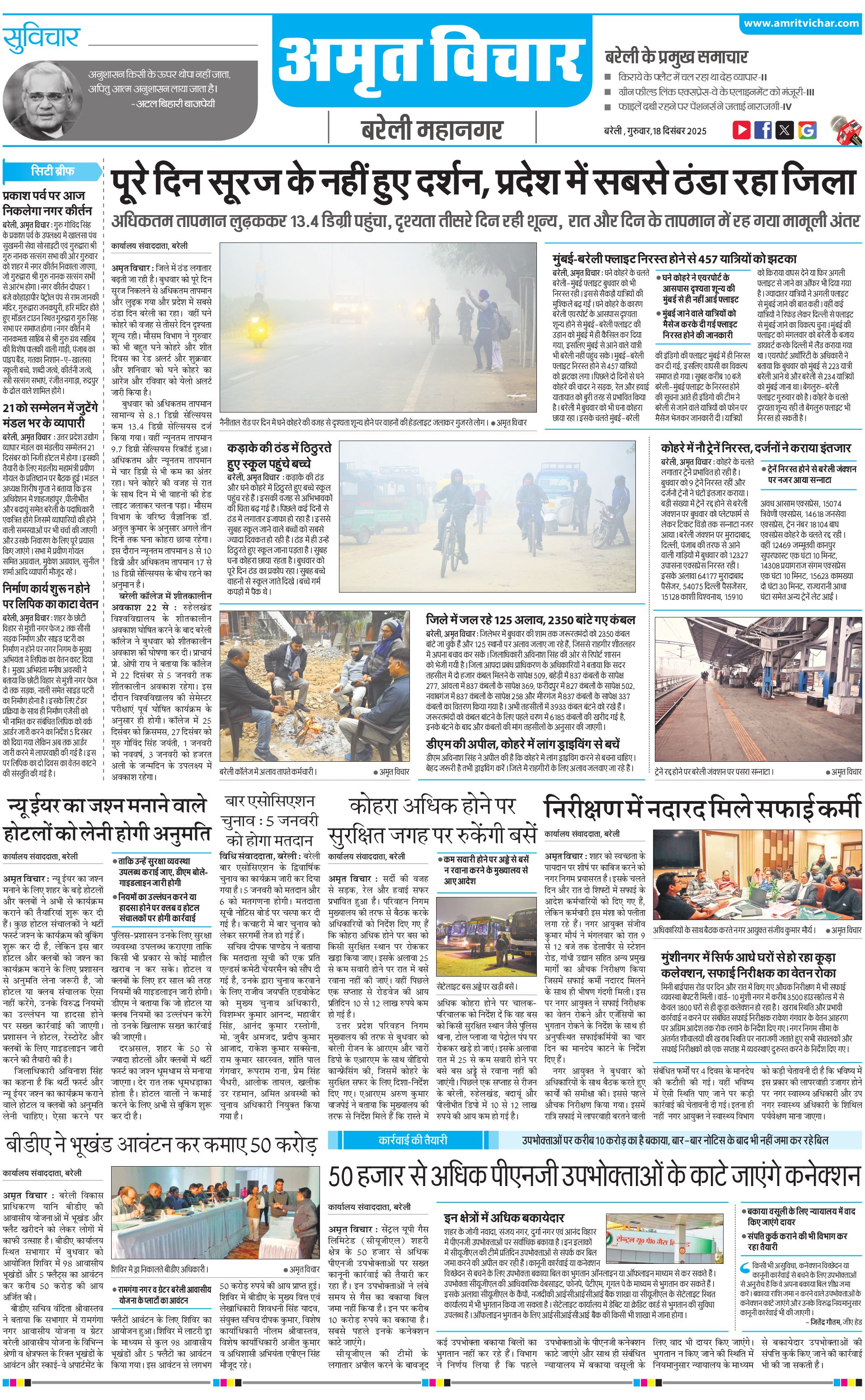 बरेली महानगर - 18 Dec 2025 - - Page 1