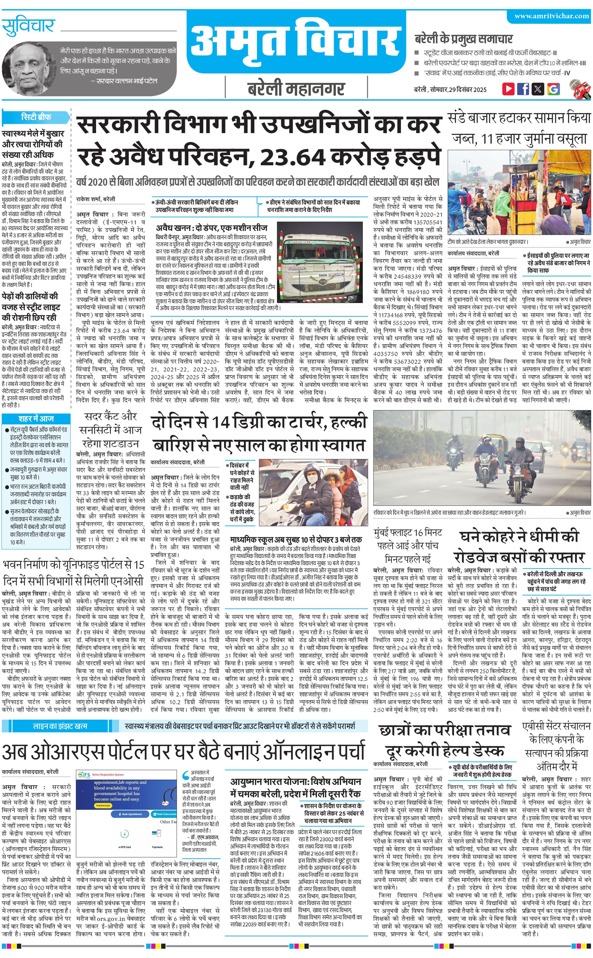 बरेली महानगर - 29 Dec 2025 - - Page 1