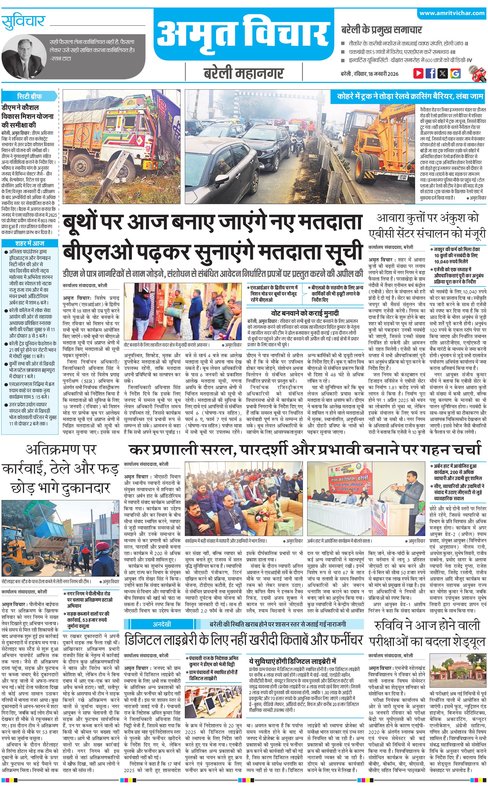 बरेली महानगर - 18 Jan 2026 - - Page 1
