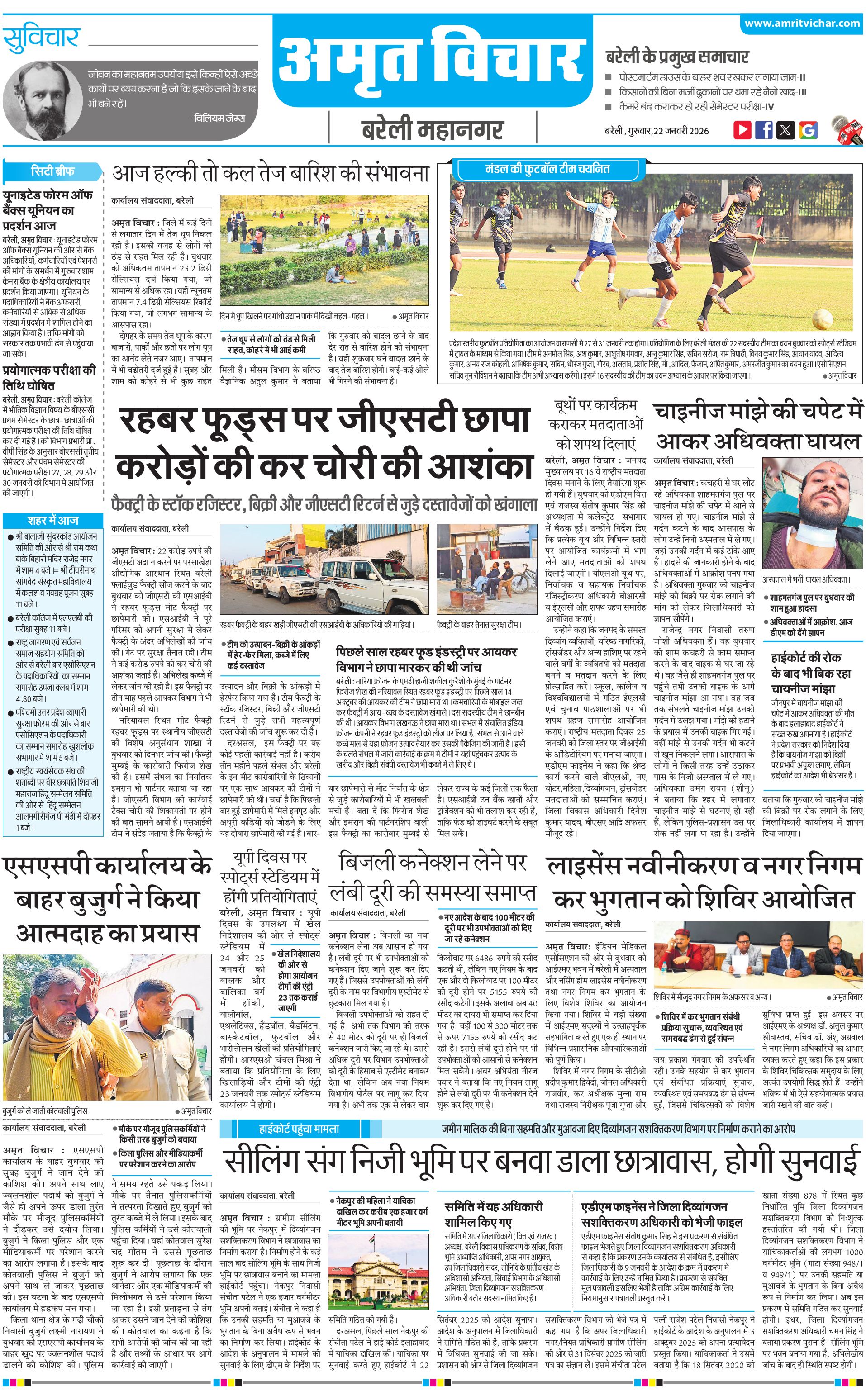 बरेली महानगर - 22 Jan 2026 - - Page 1