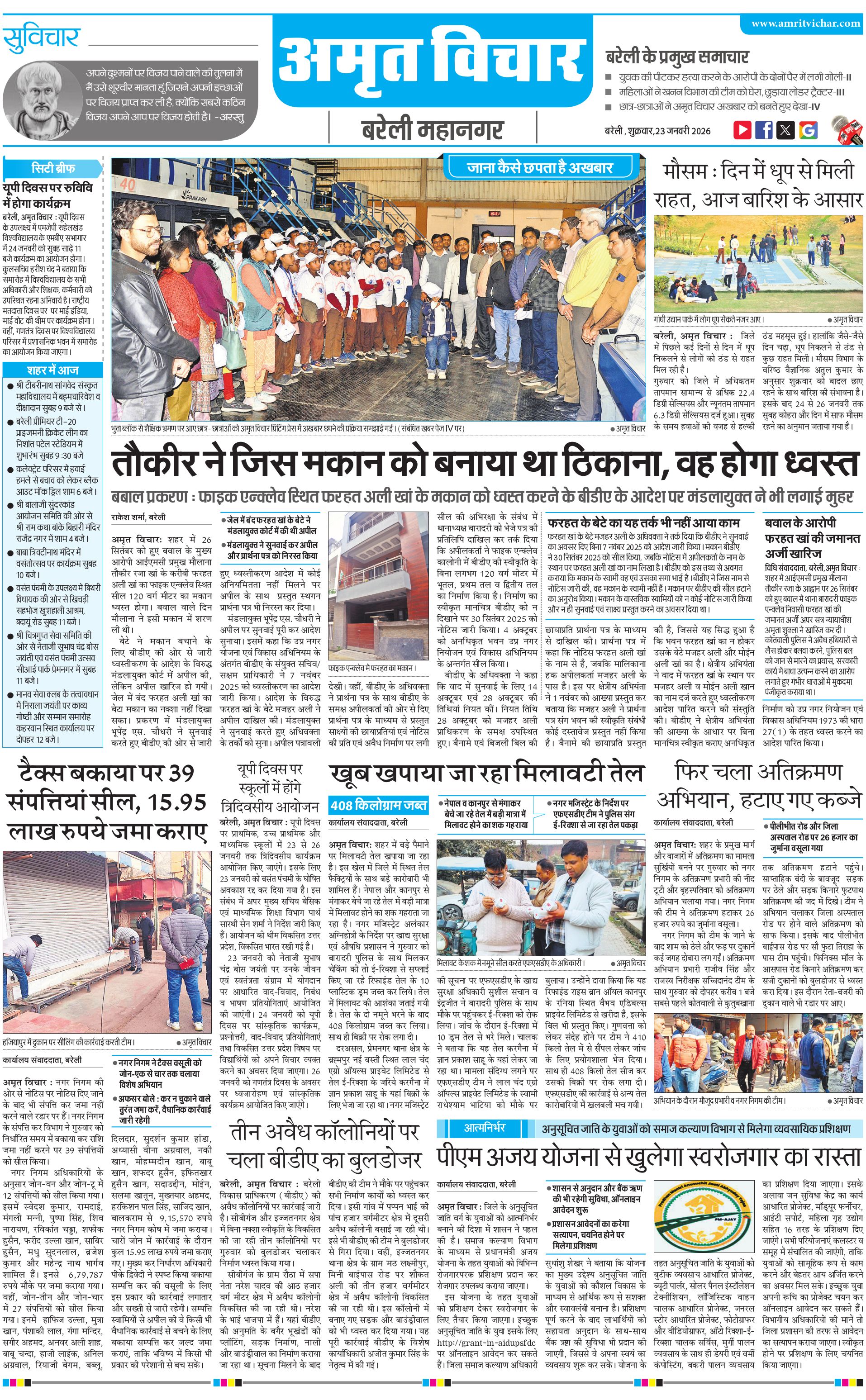 बरेली महानगर - 23 Jan 2026 - - Page 1