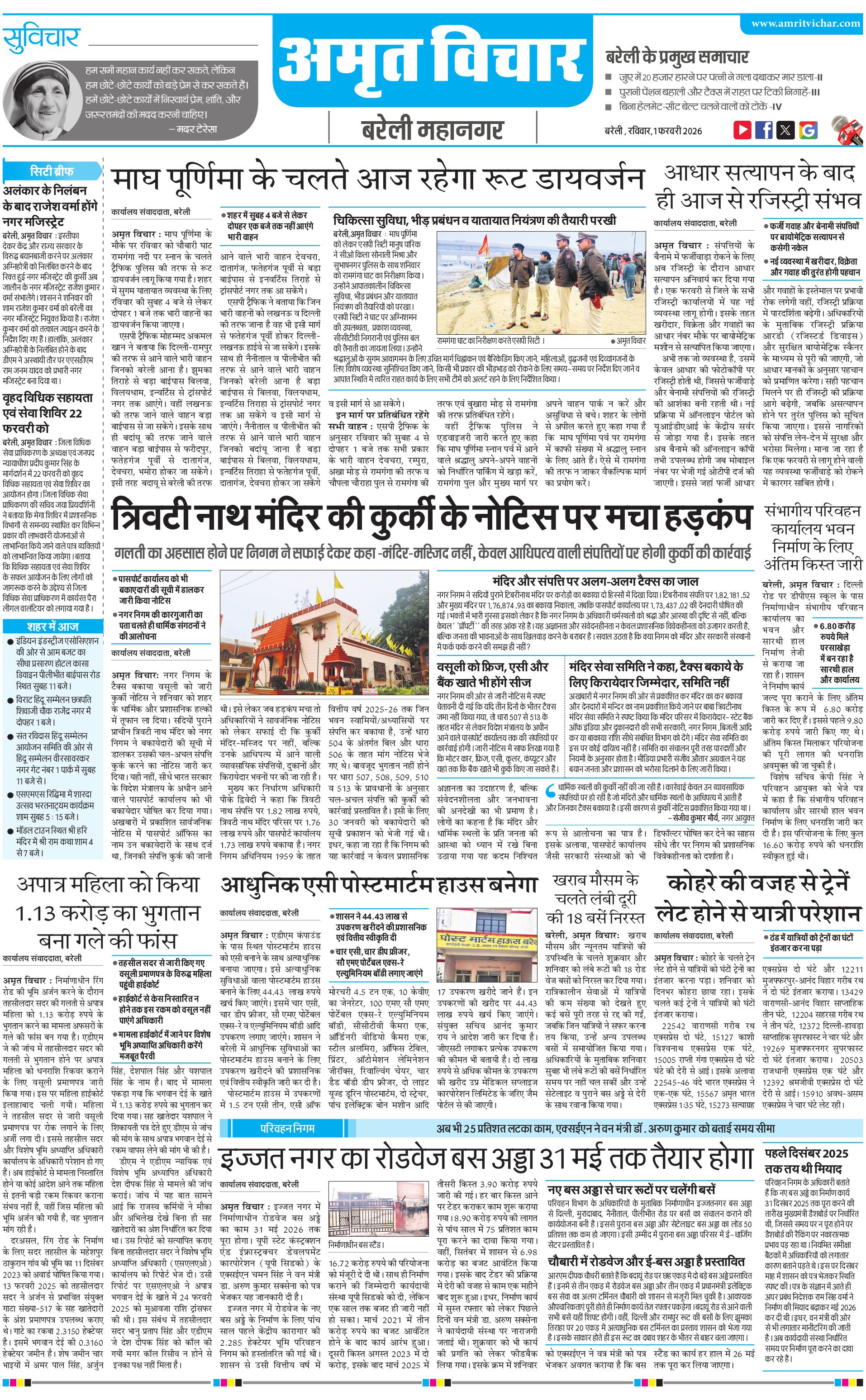 बरेली महानगर - 01 Feb 2026 - - Page 1
