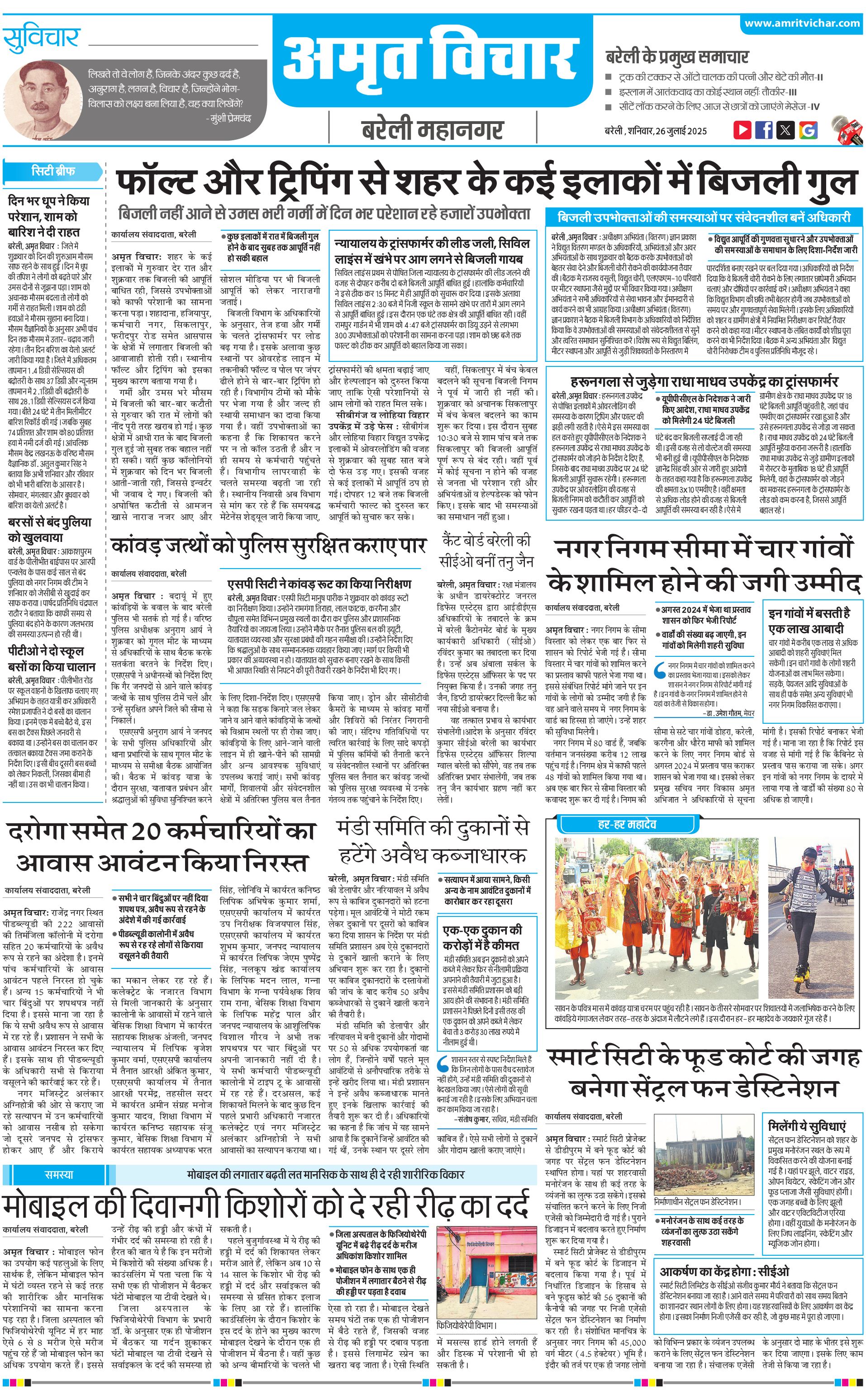 बरेली महानगर - 26 Jul 2025 - - Page 1