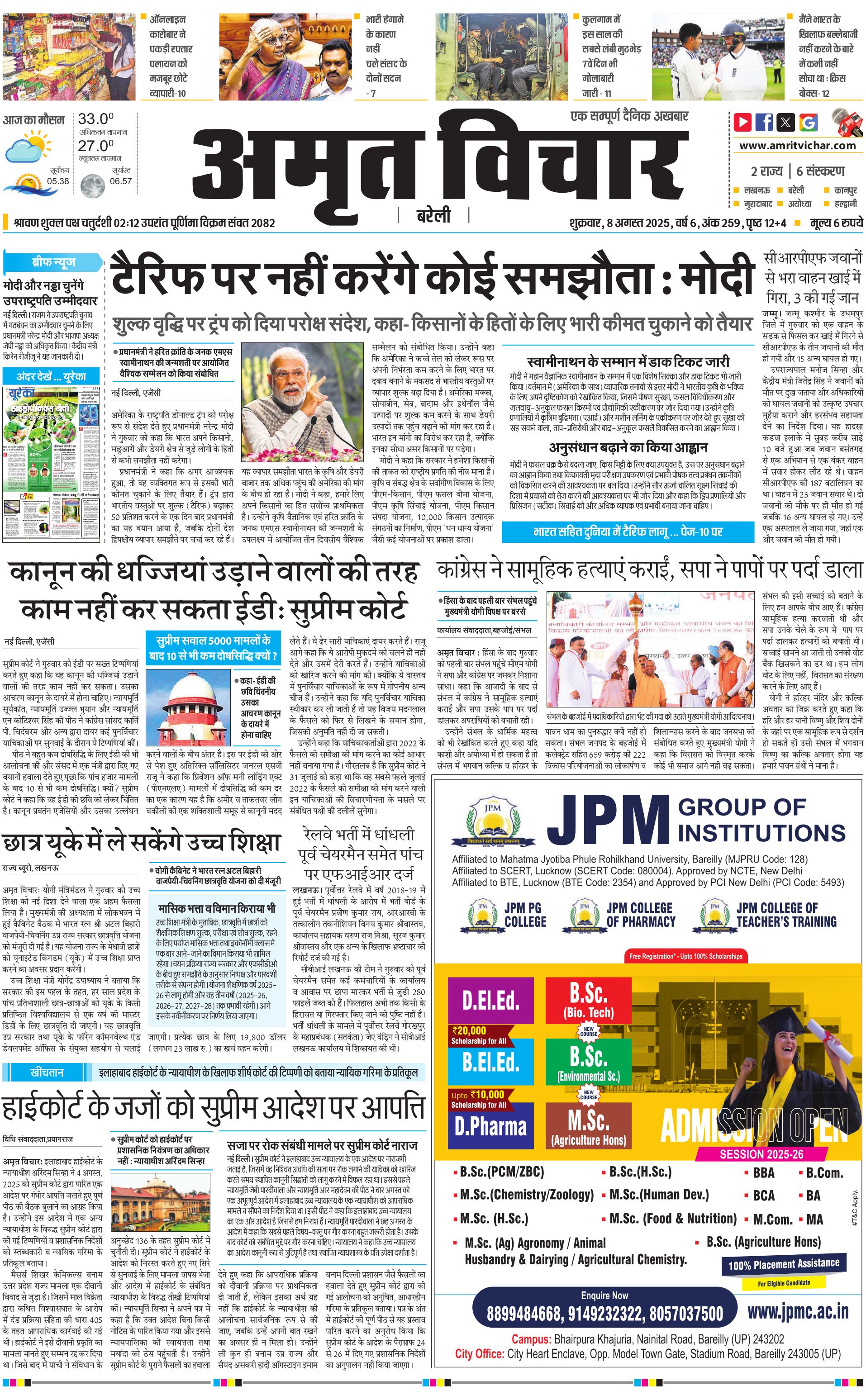Bareilly City - 08 Aug 2025 - - Page 1