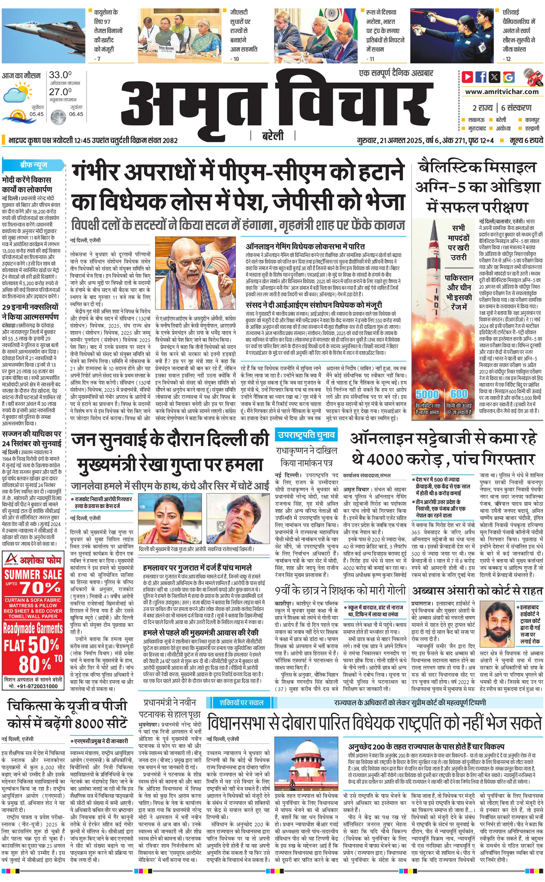 Bareilly City - 21 Aug 2025 - - Page 1