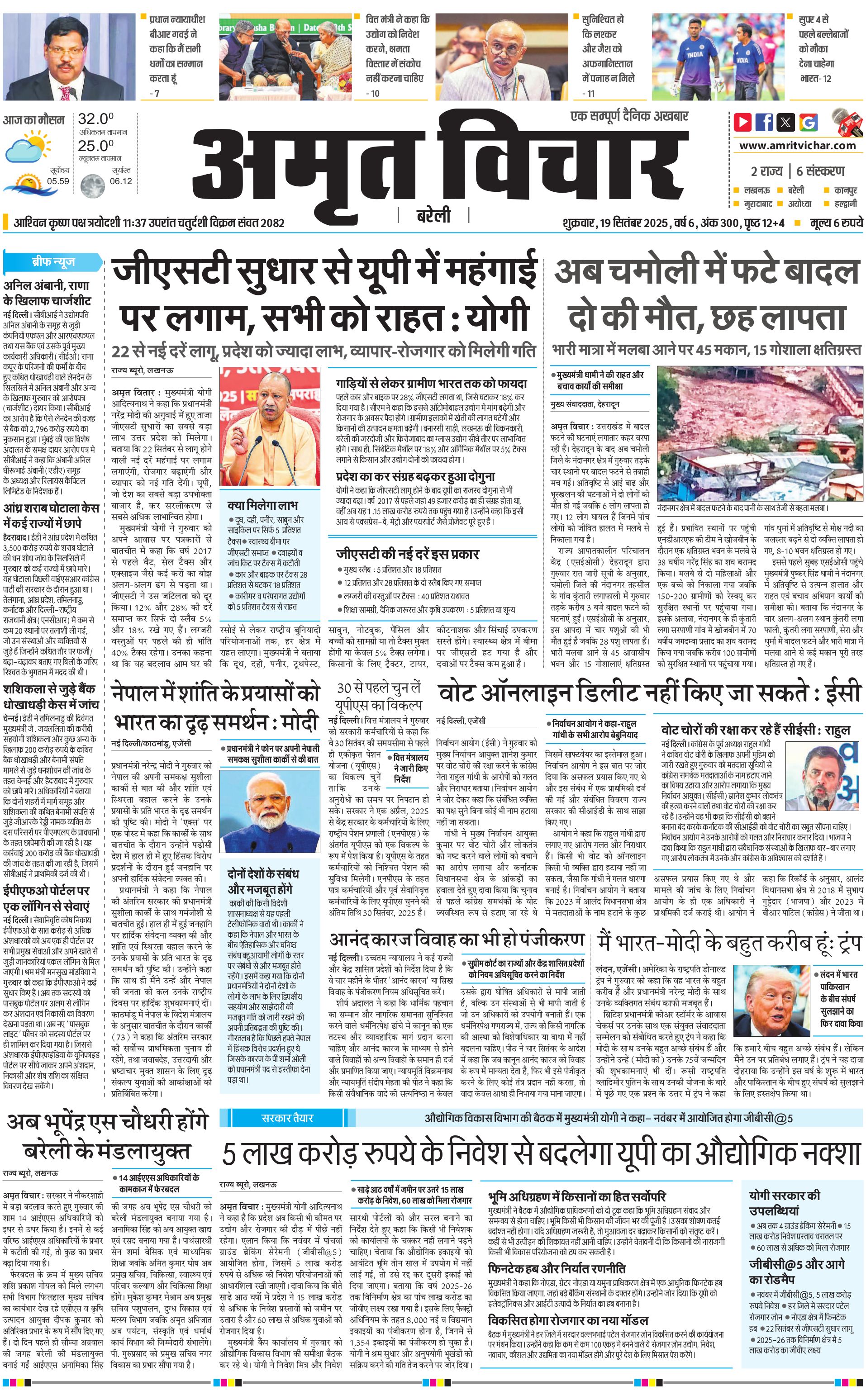 Bareilly City - 19 Sep 2025 - - Page 1