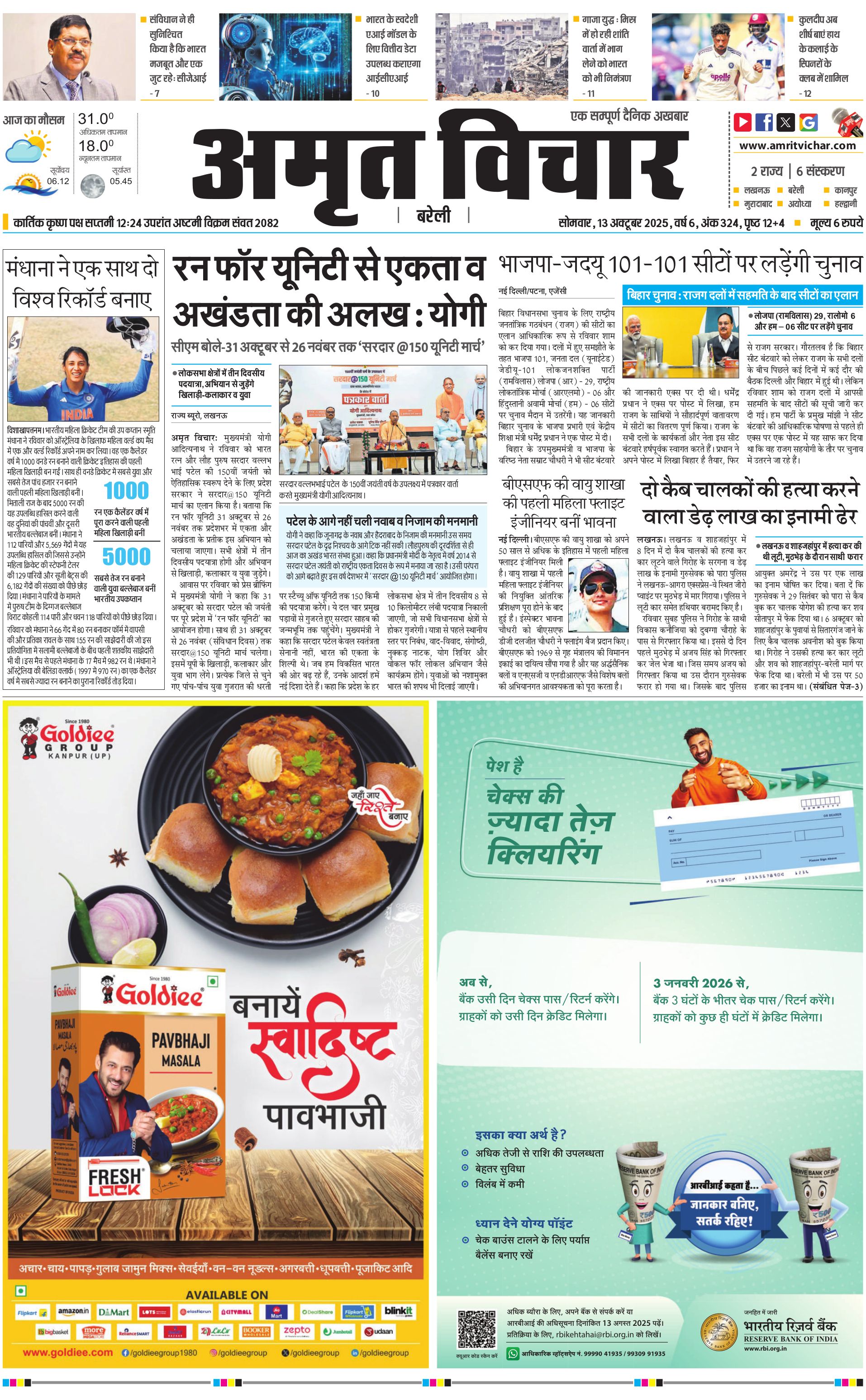 Bareilly City - 13 Oct 2025 - - Page 1