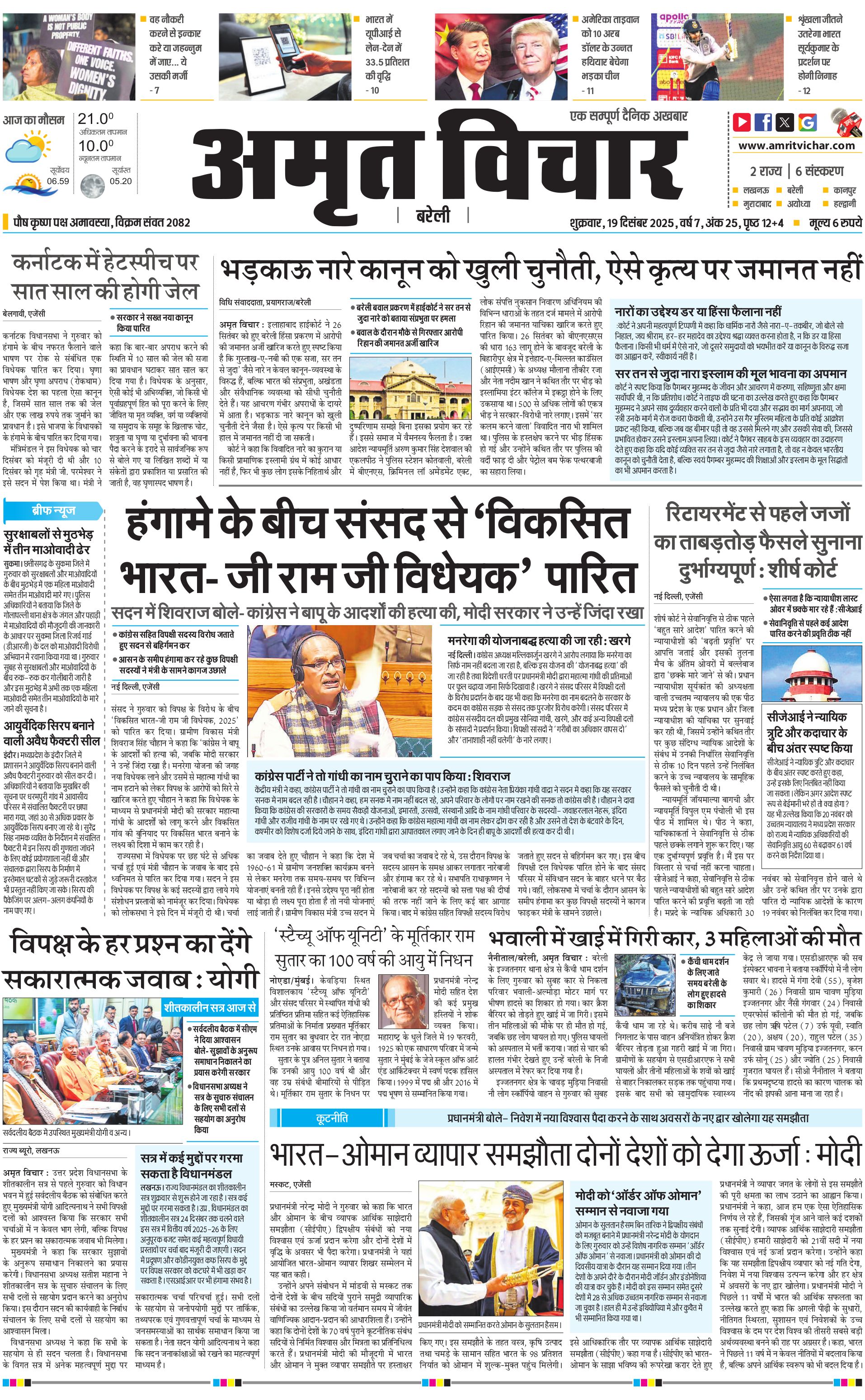 Bareilly City - 19 Dec 2025 - - Page 1