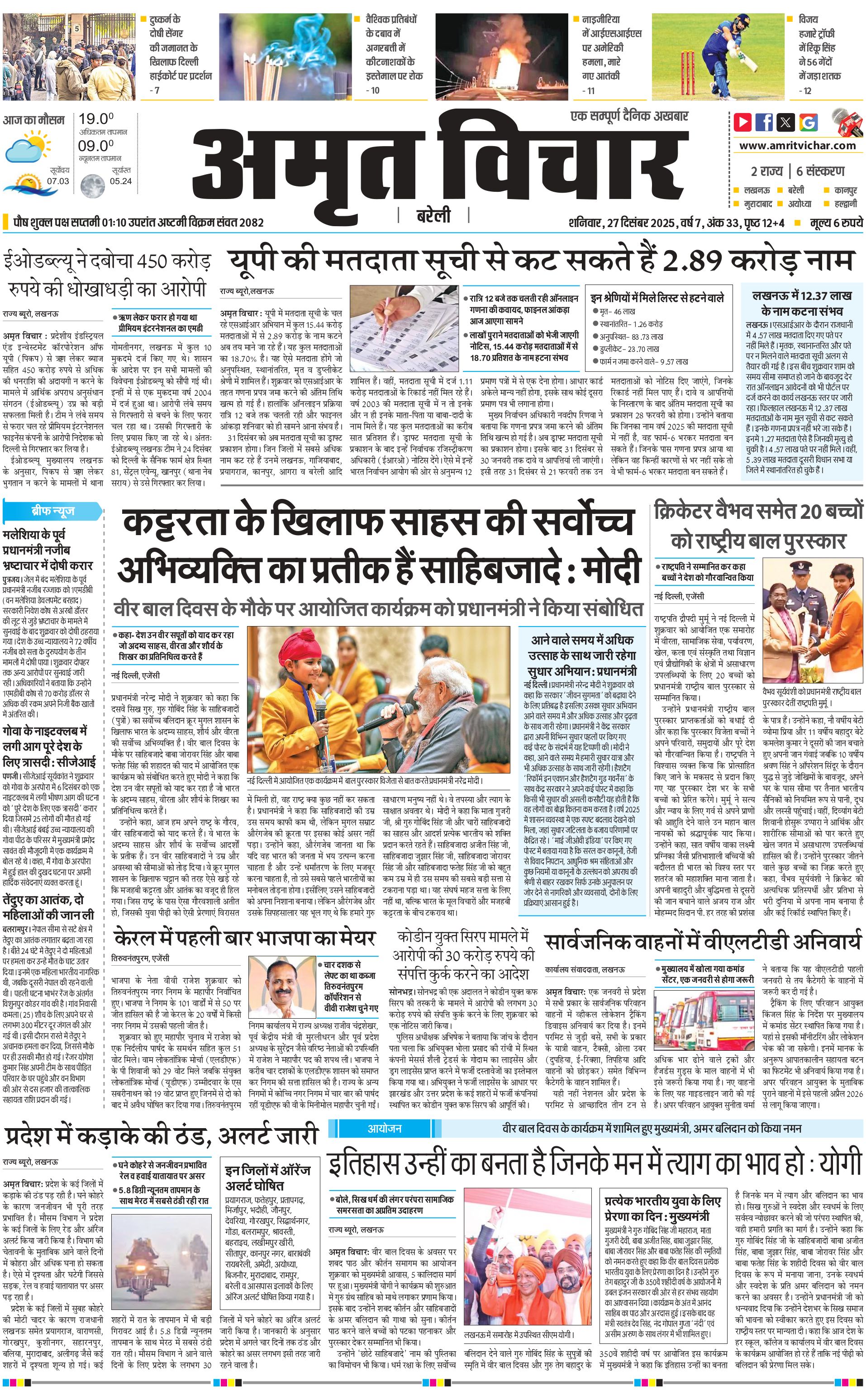 Bareilly City - 27 Dec 2025 - - Page 1