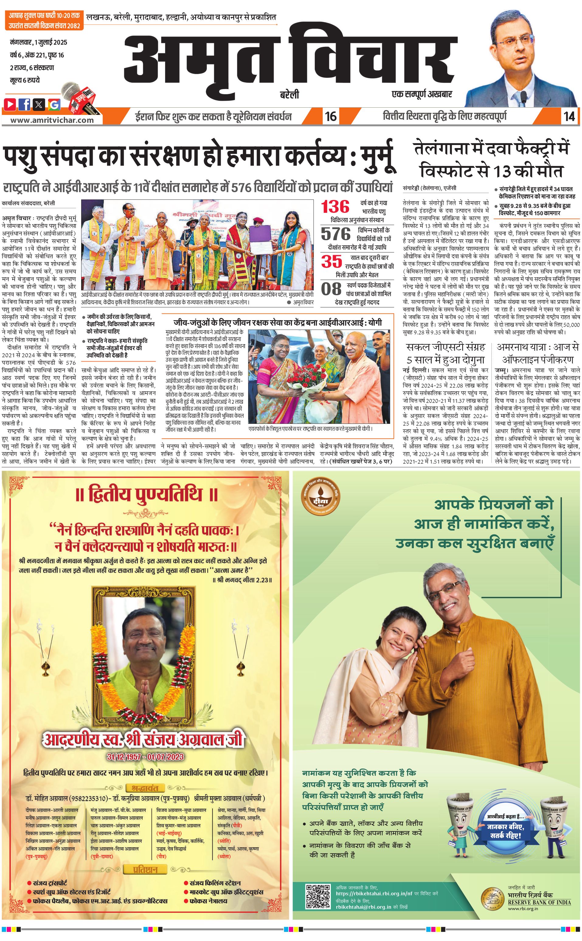 Bareilly City - 01 Jul 2025 - - Page 1