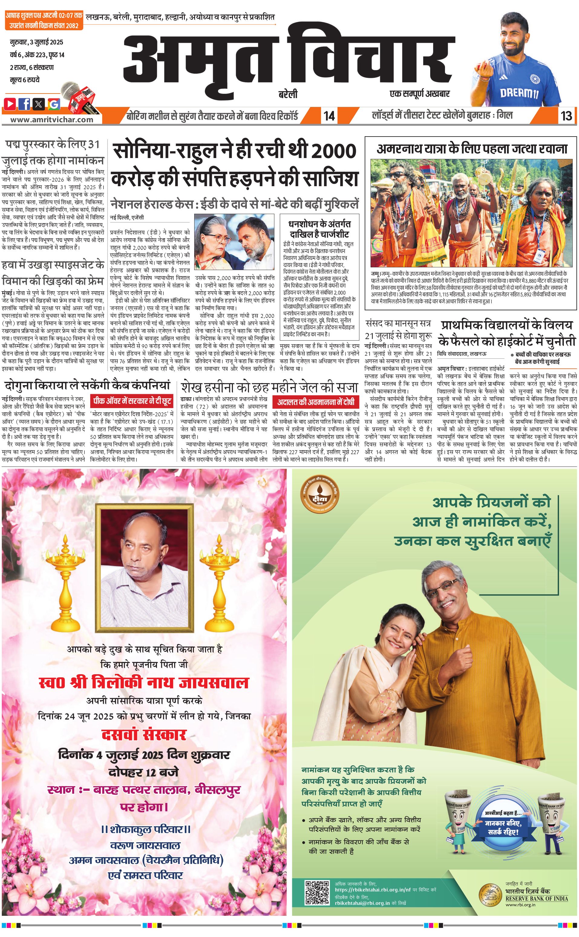 Bareilly City - 03 Jul 2025 - - Page 1