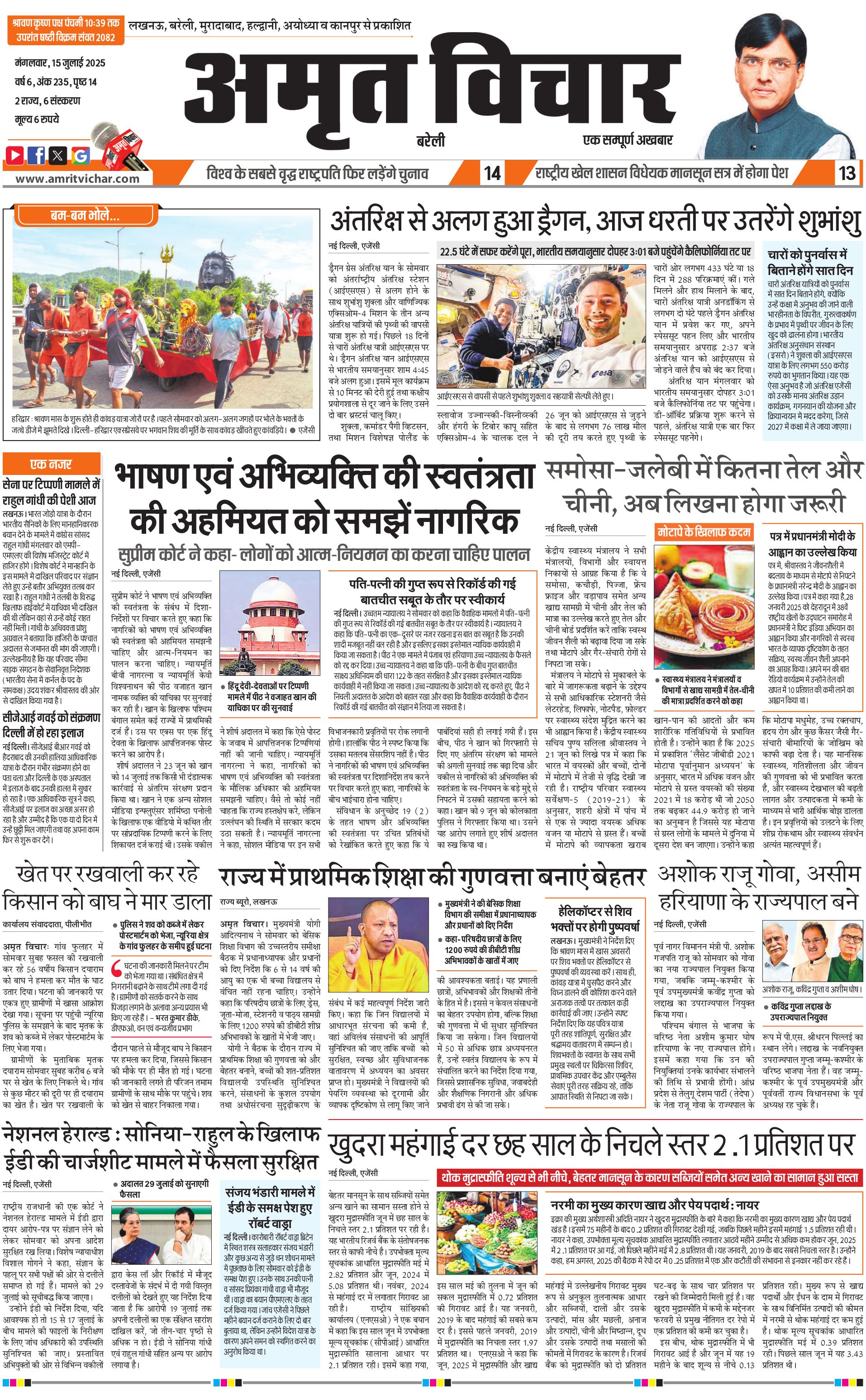 Bareilly City - 15 Jul 2025 - - Page 1
