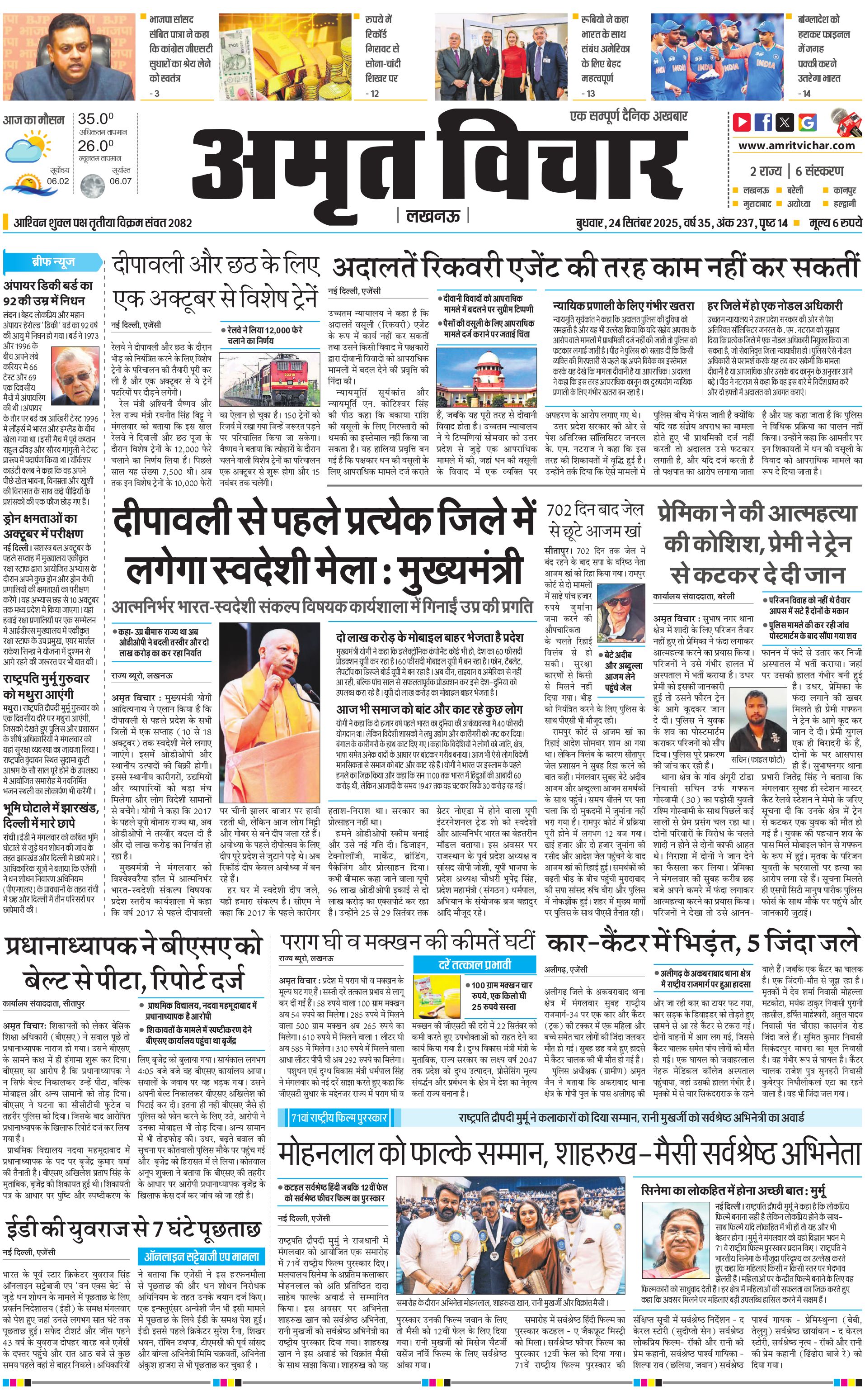 Lucknow City - 24 Sep 2025 - - Page 1