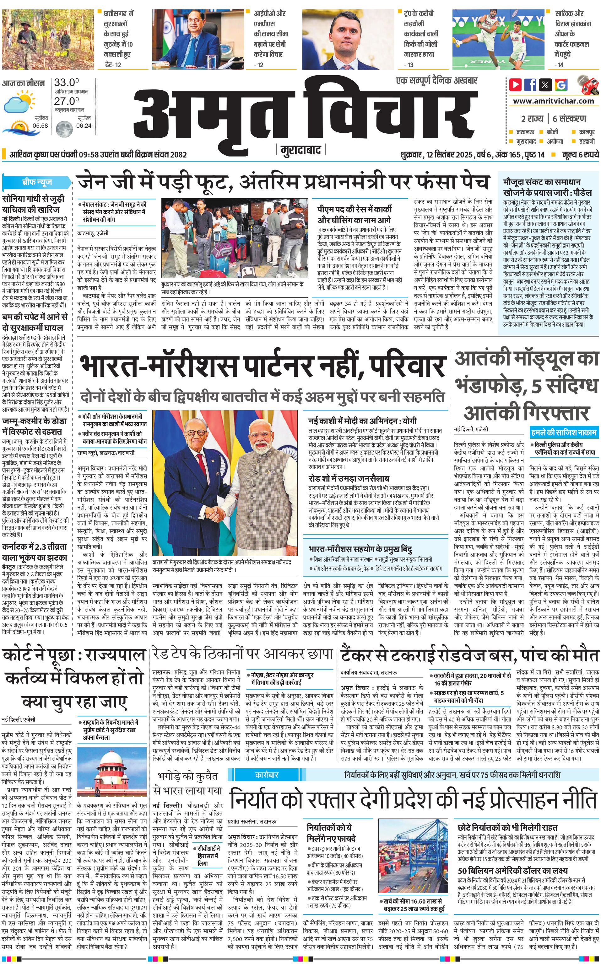 Moradabad - 12 Sep 2025 - - Page 1