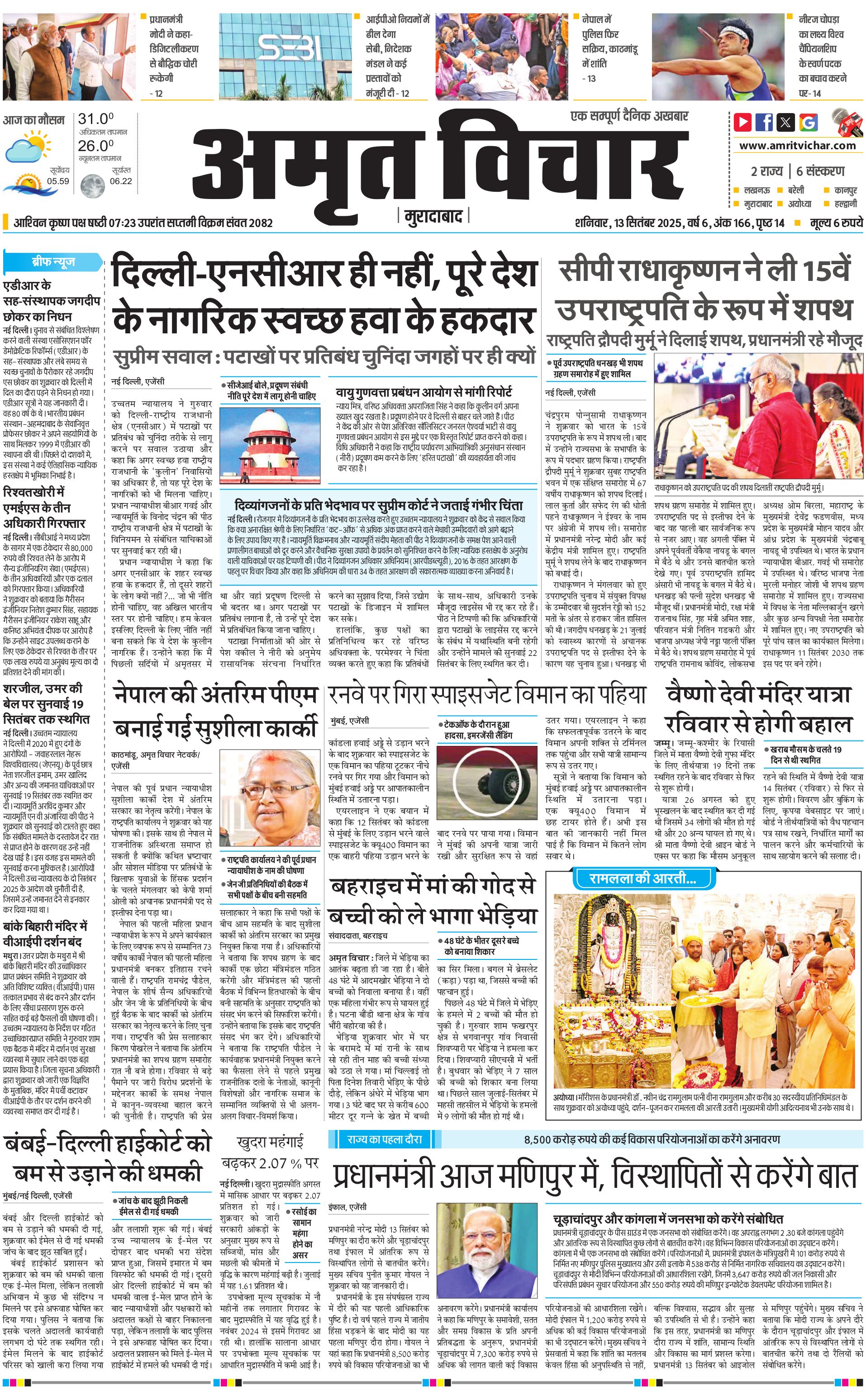 Moradabad - 13 Sep 2025 - - Page 1