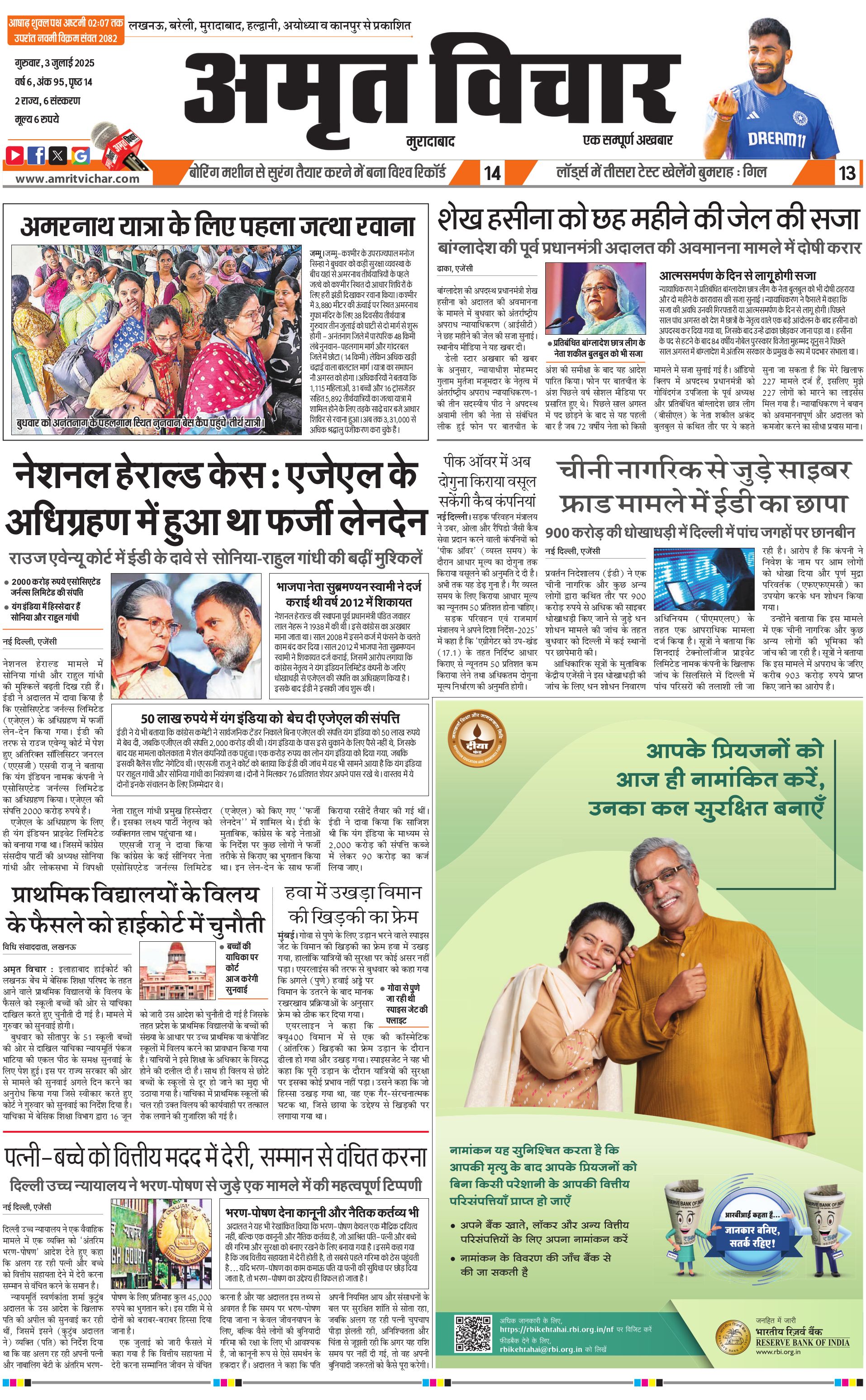 Moradabad - 03 Jul 2025 - - Page 1