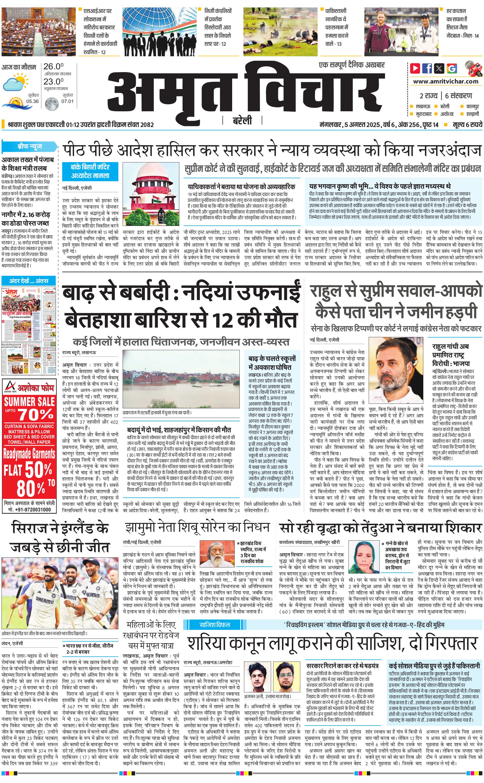 Pilibhit-Kheri - 05 Aug 2025 - - Page 1