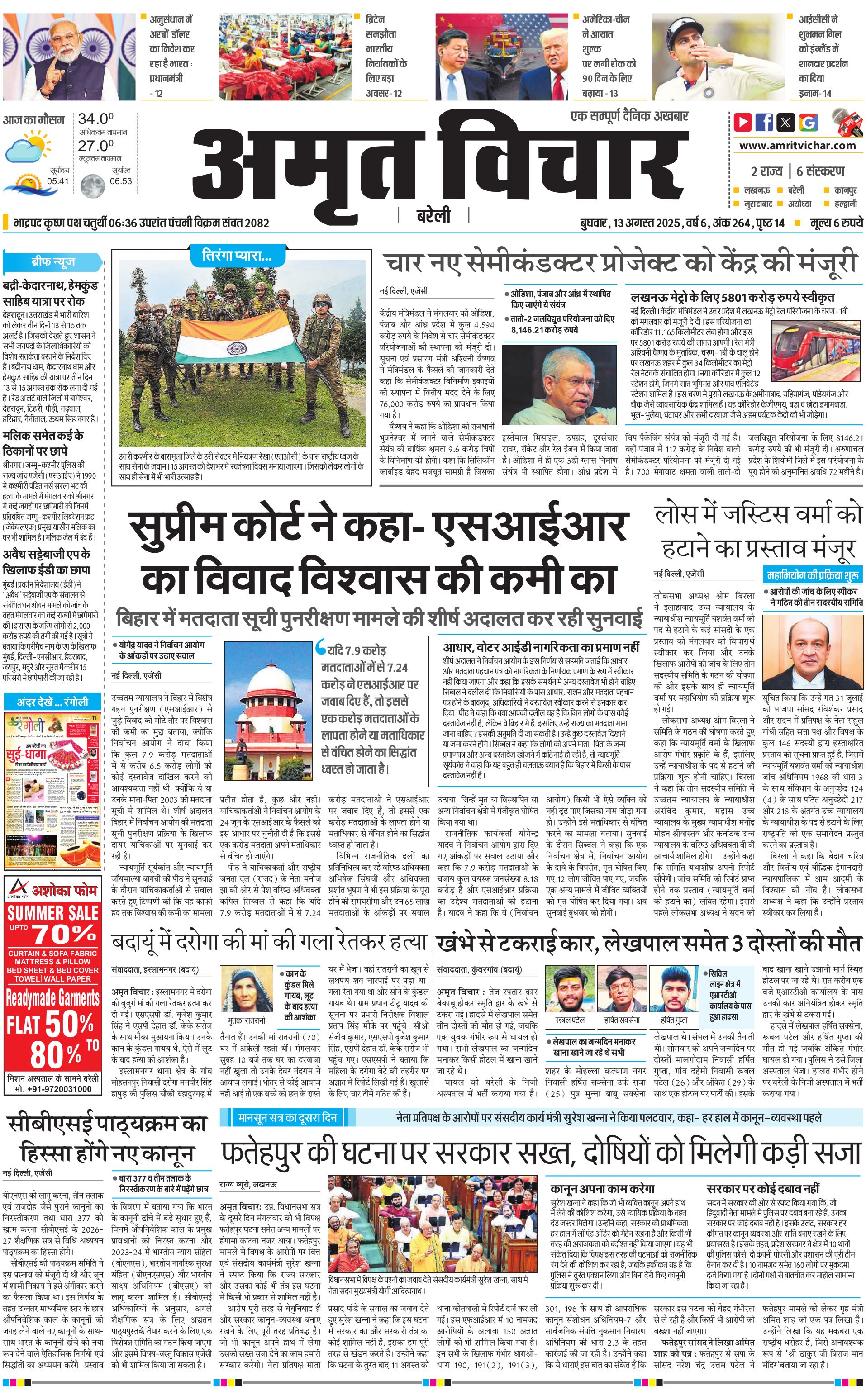 Shahjahanpur-Budaun-Kasganj - 13 Aug 2025 - - Page 1