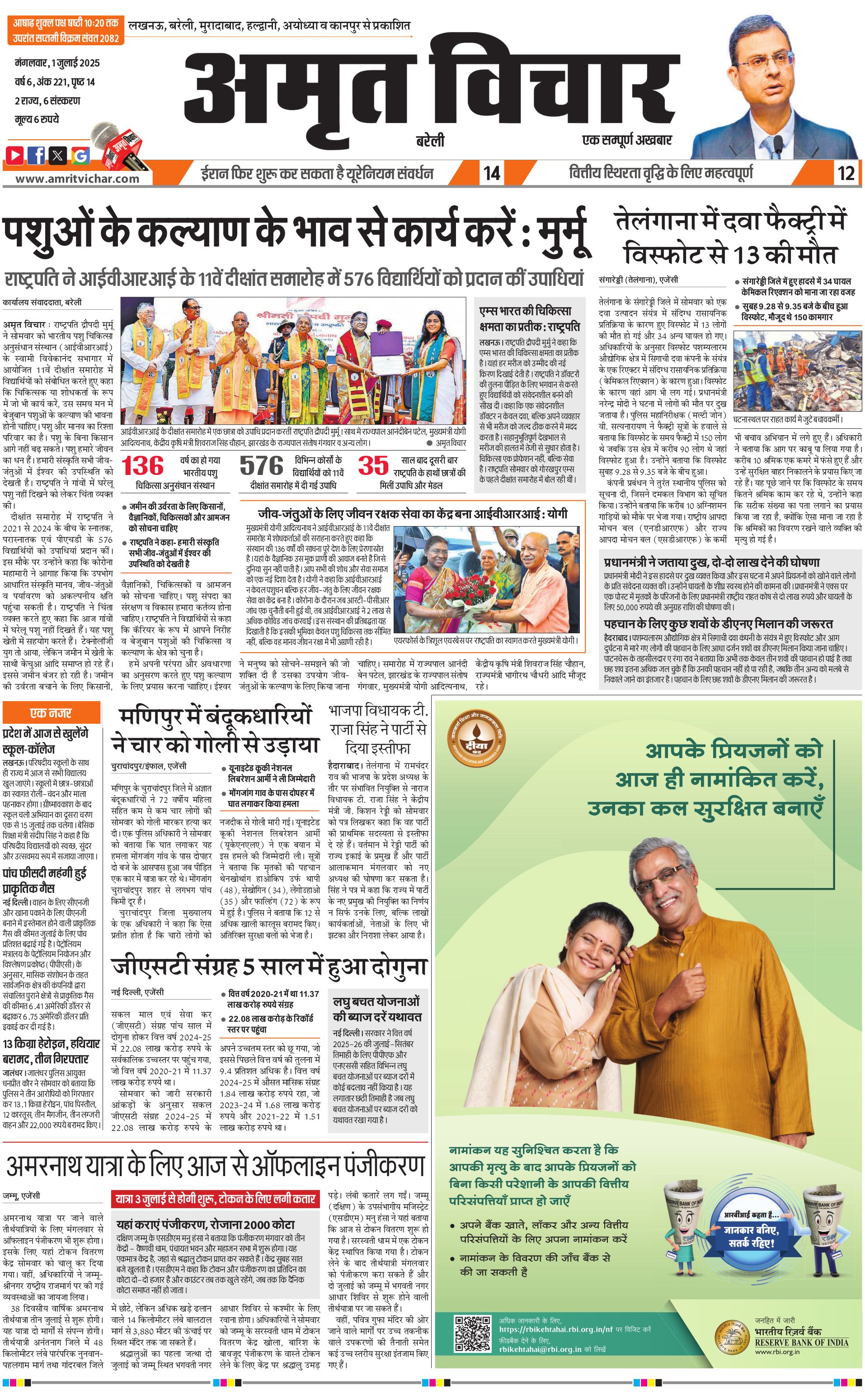 Shahjahanpur-Budaun-Kasganj - 01 Jul 2025 - - Page 1
