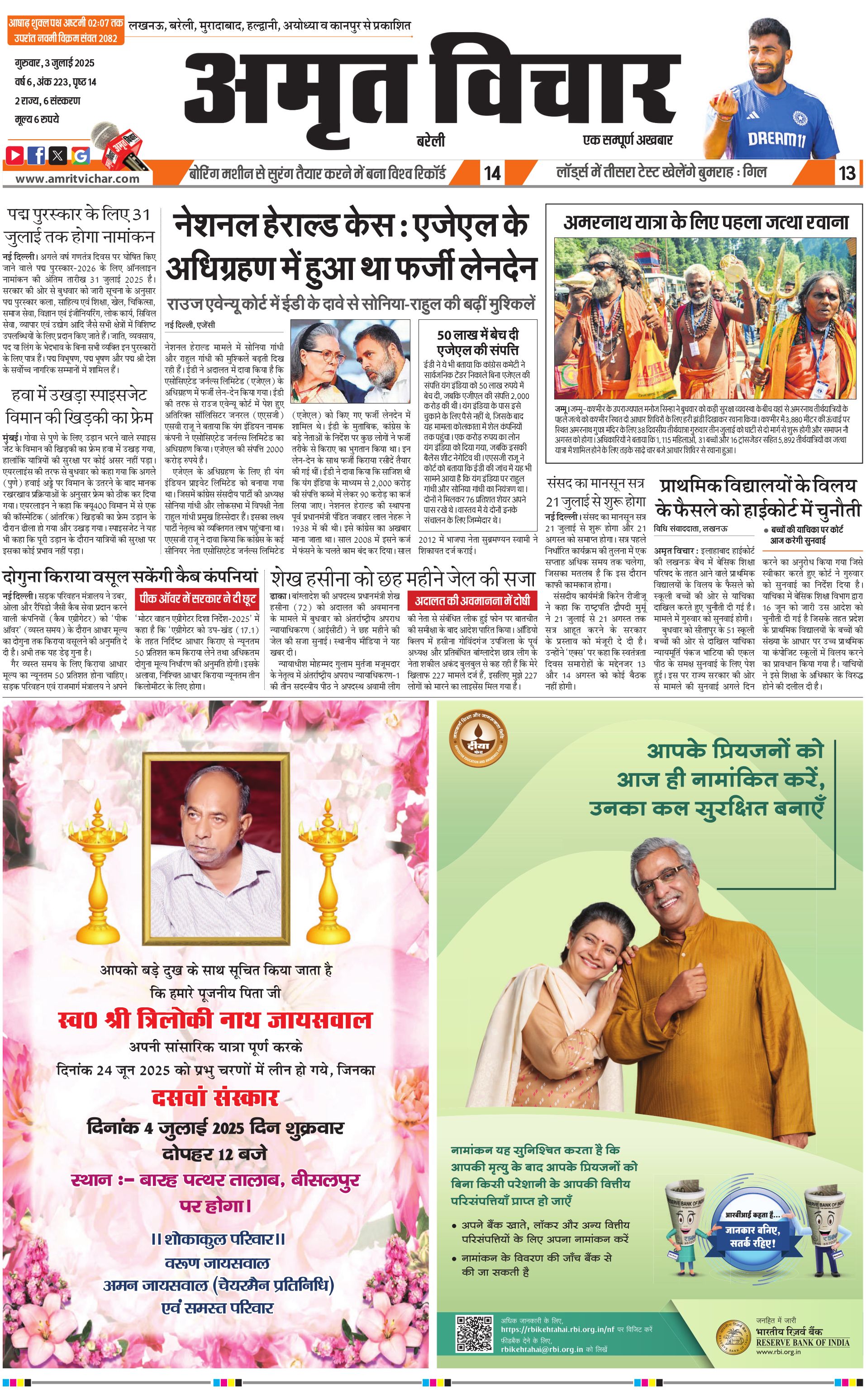 Shahjahanpur-Budaun-Kasganj - 03 Jul 2025 - - Page 1
