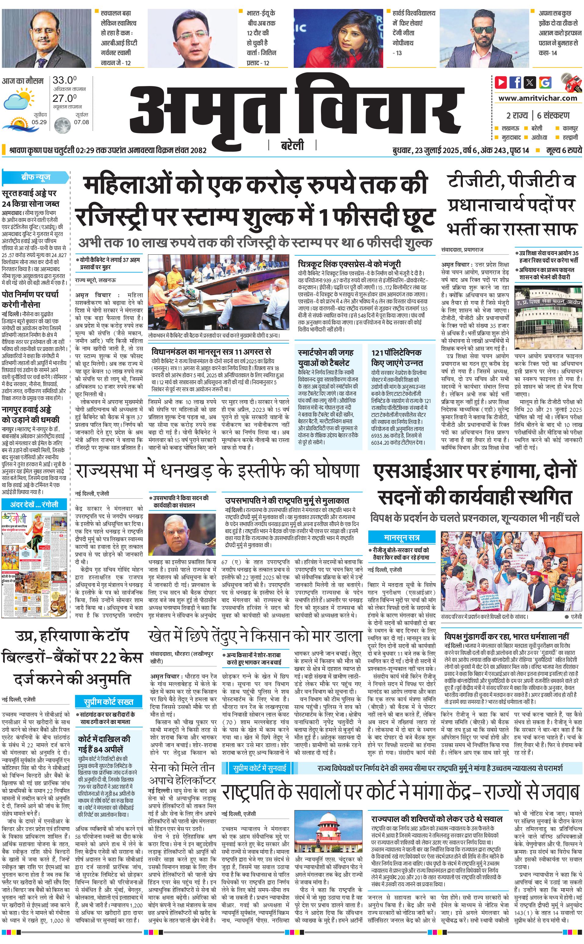 Shahjahanpur-Budaun-Kasganj - 23 Jul 2025 - - Page 1